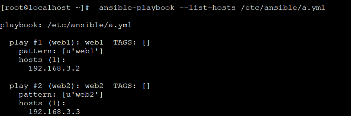 ~]# ansible-playbook --list-hosts /etc/ansible/a.yml