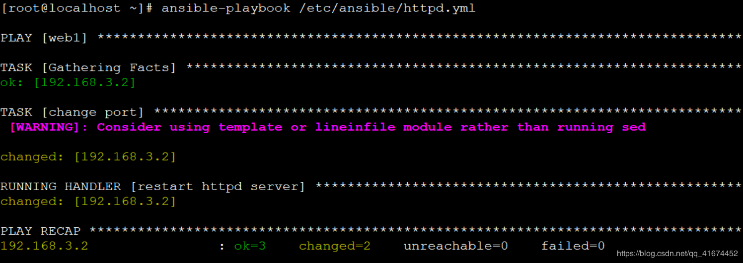 ~]# ansible-playbook /etc/ansible/httpd.yml ##Ö´Ðнű¾ |