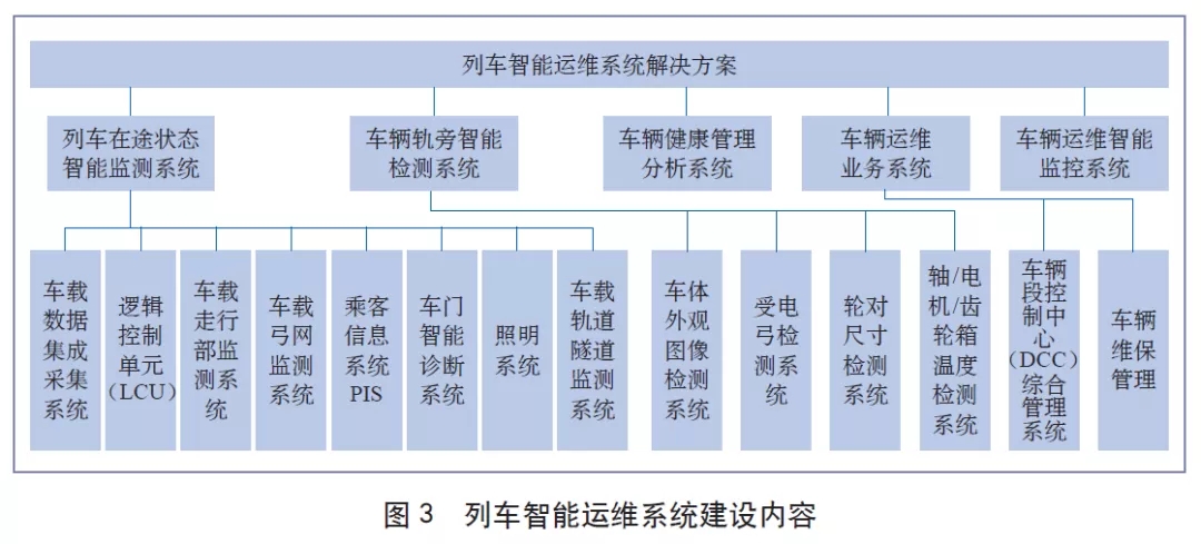 广佛城轨列车智能运维系统建设内容包括3 个层次:1 个列车智能运维系统解决方案,5 个核心子系统,N