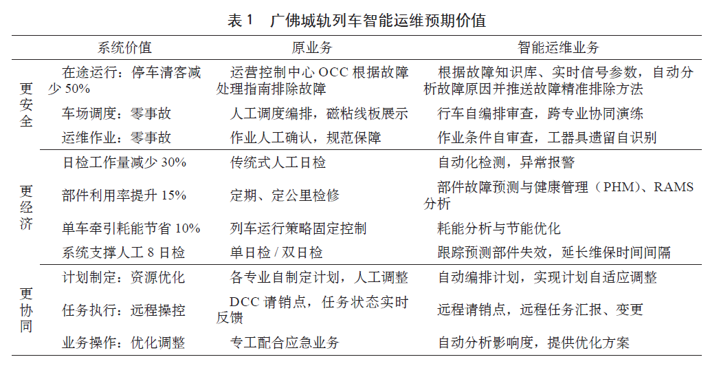 (3)以广佛城轨列车智能运维系统建设为例,证明城轨列车智能运维技术体系框架符合更安全、更经济、更协同的价值目标。