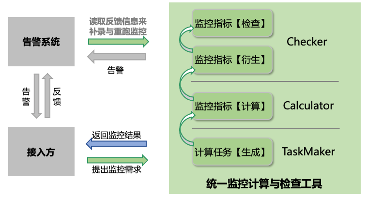 为了完成监控指标的计算,统一监控计算与检查工具可以细分为三个核心模块,分别为: