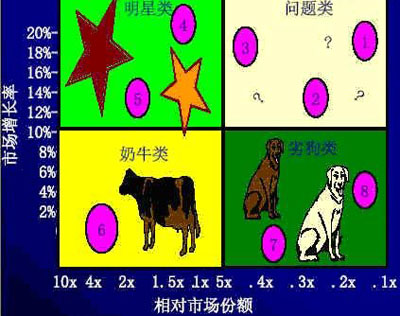 瘦狗型业务:这个剩下的领域中的产品既不能产生大量的现金,也不需要投入大量现金,这些产品没有希望改进其绩效。一般情况下,这类业务常常是微利甚至是亏损的。