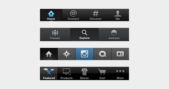 再来看看使用了tab栏作导航的Twitter应用(上图tab栏1)。拿在手里,用户可以清楚的了解它的功能,认知成本低廉,直观清晰,简单易用。固定在底部的tab栏可以立刻呈现出用户可以做哪些事情、可以去哪里看到怎样的内容。此外,与所有固定的导航模式一样,tab栏可以在用户导航的过程中为其提供上下文环境的指示,让他们始终知道自己在哪里。