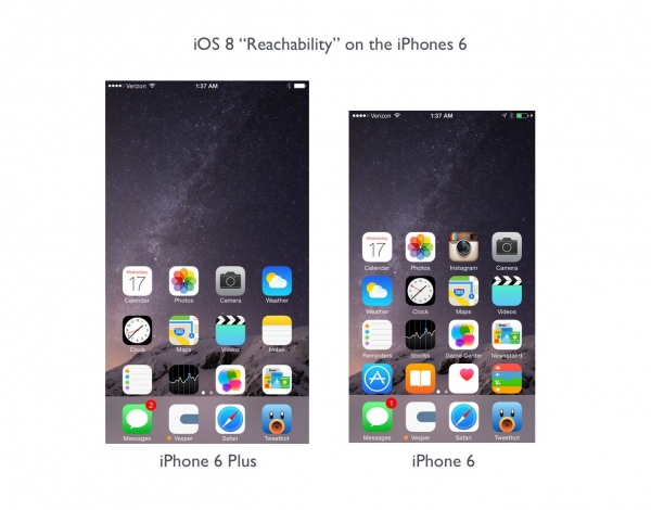 同时为了增大大屏手机单手触摸的范围,iPhone 6 Plus提供了快速切换屏幕位置方便触摸上方屏幕的用户体验,为大屏手机增分不少。