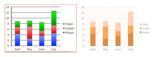 通过对左边的图应用了Tufte的最小区别不同和有效数据原理,我们在右边的图实现了更有效的信息。碰巧的是它也是更美丽的。