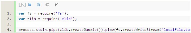 而如果我们想发送数据到一个本地文件,并想使用gunzip对这个stream进行压缩,可以这样做: