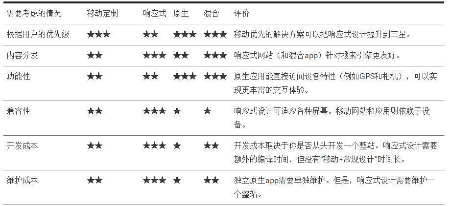 不像传统网站,移动端有四大著名的分发方法。移动用户可以选择在他们的浏览器上查看内容,这些内容要么是针对移动端设计的网站,要么是响应式的——意味着它会针对移动端重新布局。还有一部分用户选择安装App,这些App要么是原生的,要么是混合的(原生+WebView)。原生应用有自我局限性:需要预先定制适配各种屏幕的应用。混合型应用则更灵活,它们从互联网上读取内容(就像在浏览器中看内容那样),但提供给用户“像App那样的“界面。