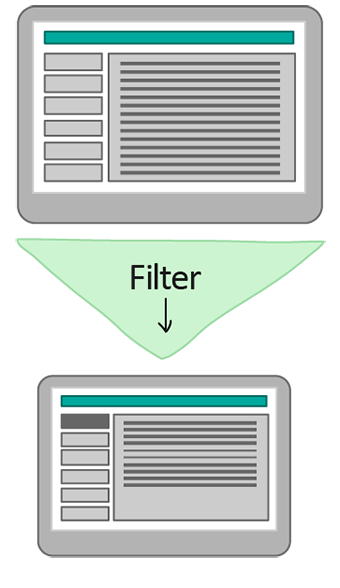 过滤视图最终允许用户通过选择过滤条件创造不同视图,来在一系列数据之间进行导航。过滤,和使用“面搜索”一样,从允许用户浏览适合自己的内容而言,是一种很好的方法。