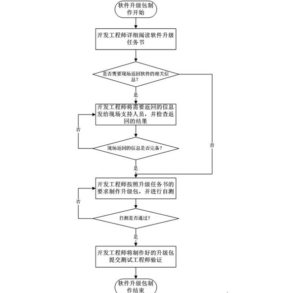 基于客户的要求或软件功能的改变,项目研发经理(或项目负责人)会向本软件的开发小组下达升级任务书,让他们安排时间按照升级任务书中的内容来制作软件升级包。