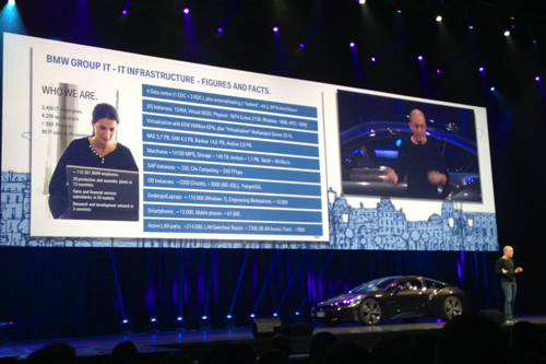 之后,随着一声汽车的鸣笛,全场沸腾,BMW最新的新能源旗舰车型I8从舞台右侧驶入,全场沸腾,不难猜到,BMW也在OpenStack的帮助下快速发展,在汽车行业创造了很多新的奇迹,I8 的优雅与OpenStack的全面,来自BMW的IT架构师Stefan Lenz为我们带来更多BMW与OpenStack一同创造的历史。在选择云计算解决方案时,Lenz看过20多个demo,无一例外,这些不同厂商带来的产品都拥有一张相同的脸孔,那就是OpenStack Dashboard,This is it!在之后的六个月中,OpenStack帮助BMW IT系统架构成功,快速,稳定转型。