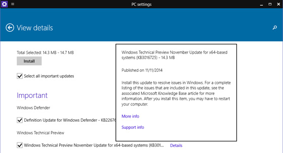 此外Windows技术预览版本中还对PC设置、升级与修复等选项进行了重新调整。