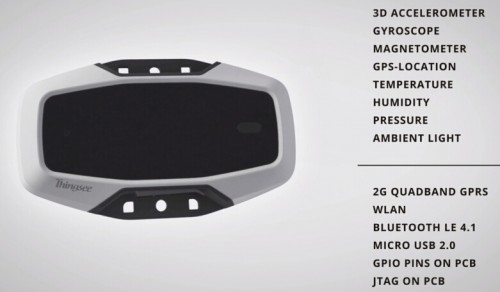 Thingsee One类似一个移动设备,配有一个单色显示屏,内置传感器、2G Quadband GPRS、WiFi、蓝牙、GPS、加速度计、陀螺仪、磁强计和超长寿命的电池等。通过Haltian提供的移动应用对Thingsee进行简单的配置,帮助IoT开发者和那些不熟悉硬件开发的人获得自己所需地特定用途,从而为他们节省更多的时间和金钱。