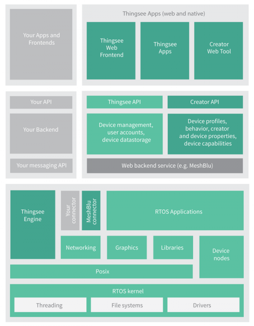 获取完整的硬件控件和必要的文档支持,帮你使用Thingsee设备SDK来经历SW开发阶段。使用C、C++或Assembly来深入和扩展设备软件的功能。并且,Thingsee One设备软件是基于开源的RTOS。
