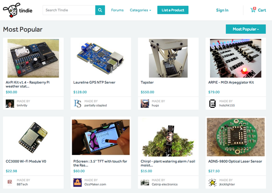 自成立以来,两年多的时间里积累了极高的人气,上线超过2000个独立硬件产品,仅在过去一个月就增加了200个新产品。曾获得知名风投基金A16Z 120万美元的天使投资。有人评价Tindie对于硬件设计和制造的作用,就和开源对于软件开发行业的作用一样,具有非常重大的意义。
