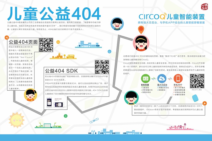 腾讯技术公益志愿者协会针对走失儿童问题,召唤了一批业界有志愿公益事业的程序员,把“找不到孩子”与“网站404错误找不到的页面”的场景相嫁接。在项目开展的过程中,我们成功地帮助20个家庭寻找回走失小孩。
