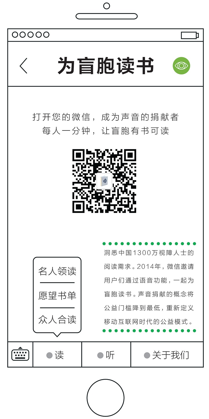 现如今,互联网的浪潮也涌入了书店,越来越多的人开始在电子荧幕上阅读和分享知识了。对于普通人来说这个变化不足为奇。但对我们的盲人朋友来说,可是一座难于逾越的技术屏障。得知盲胞朋友们在手机上阅读文字的不便后,CDC的工程师们借助微信公众账号,向互联网亿万网民分发书籍或资讯中文字片段。通过热心网民的简短语音阅读、计算机算法智能处理,合集成为完整的语音CD,协助视障人士跨越“阅读”书籍与文章的沟壑。猜猜我们现在已经进展到了哪一步吗?这里悄悄透露一下