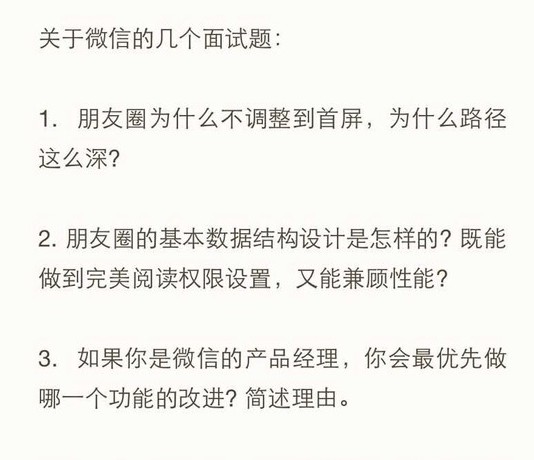 前几天发了三道产品经理的面试题,题目是关于微信的,如下:
