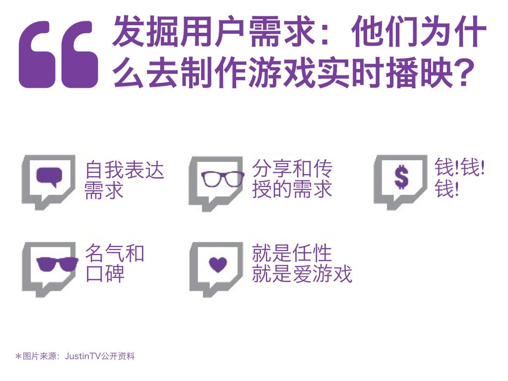 年的时候电竞直播并没有现在这么成熟,但 JustinTV 的创始人已经感到暗潮涌动,只是他们不明白究竟该用什么样的角度去切入市场,并运营电竞直播的产品。最后团队通过大量的用户调研和数据采集,才摸到了里面的个中奥妙-包括电竞直播的精髓其实在于内容获取的渠道。然后也是通过不断地用户调研作为开发的基础,迭代相应的功能和插件,并以此作为之后三年产品开发的主要依据。