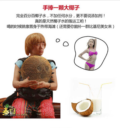 (潜台词:不少网友都去过泰国,即使没去过,“泰国游”也是耳熟能详。现在,你不在泰国,也能如置身泰国,喝到泰国最正宗的椰子水了。)