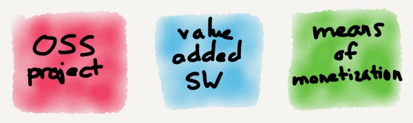 开源的商业化生态中有三个部分:开源项目本身、基于这个项目之上的增值项目,以及货币化的方式。