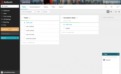 Redbooth为公司提供项目管理,以及许多其他功能:文件存储、聊天和视频会议。Redbooth的任务管理部分允许用户制定在一个给定得到任务上花多少时间。