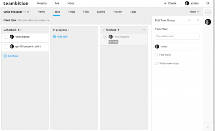 Teambition是一个高效而稳定的项目协作平台,是基于云服务的协作化项目管理平台。用户可以通过任务板、分享墙、文件库等功能来实现项目知识的分享、沟通;项目任务的安排及进度监督,以及相关项目的文档存储和分享。