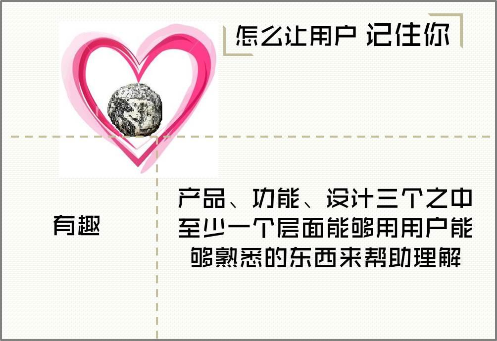 怎么让用户记住你的产品?——有趣!产品、功能、设计三个之中至少一个层面能够用用户能够熟悉的东西来帮助理解。