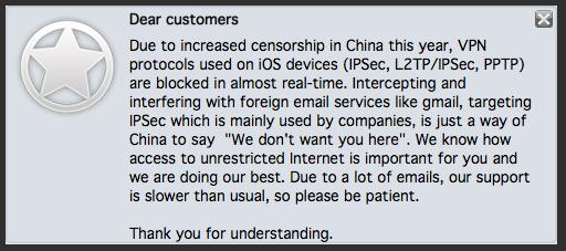 "The Great Firewall is blocking the VPN on the