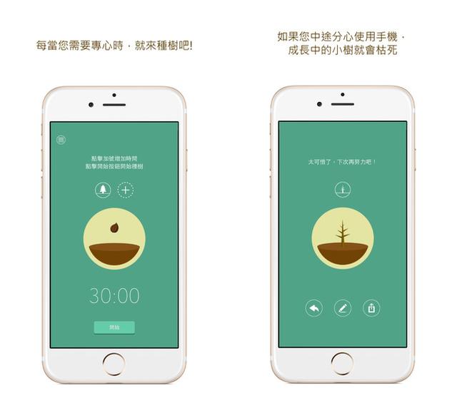 4.Forest:坚持30分钟不玩手机就可以种出一棵树,一旦你想放弃,它就提示你, “充满活力绿意盎然的树会枯萎”。让强迫症们怎么能下得了手,只好乖乖继续工作。做为回报,不久之后你就会有一整片属于自己的绿油油森林。