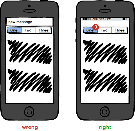 对于应用内提醒,尤其是聊天类等容易触发多条消息提醒的应用,不宜使用系统级通知。只有当用户处于其他应用时,为了让用户回到有消息的应用中,才会使用系统级通知。注意,系统级通知推送要合并内容,不要让用户下拉之后看到长串的消息。