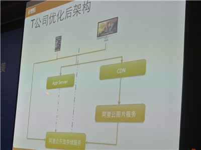 一家互联网创业企业,业务是手机端图片云存储。比如帮助用户在本地存储缩略图,节省手机空间;提供云照片冲印等。创业之初,他们的IT架构很简单,通过阿里云的虚拟机,搭建Web App Server,最初2-3台的时候可以,但扩展到40-50台的时候,计算资源和存储节点都不够用(因为云磁盘限制在8TB,数据在向上扩展,需要继续横向扩展磁盘)。而最初他们的架构这方面考虑的不多,如果在云磁盘的基础上增加,一方面存储容量扩容有限,另一方面存储性能扩展需要修改,最关键的是图片尺寸和类型各异带来处理极为费劲。这样情况下,通过OSS和技术上的优化,实现了架构的改变。数据直接从用户端上传到OSS,AppServer只是控制流,所以带宽可以节省下来。通过URL签名,帐号密码等都存储在App Server上,用户需要服务的时候,App Server在几秒钟或者几分钟有效的方式,返回到手机端,通过手机端写入,非常安全,而且节省带宽。当用户数量越来越多,为节省资源提升服务,可以做读写分离,读通过CDN和存储(图片服务),实现图片压缩和类型转化。