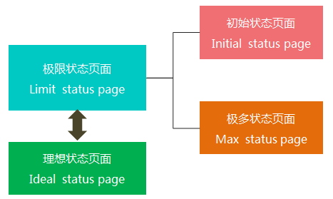 我们做原型、做产品的逻辑设计,经常考虑的是在合理的理想情况下的界面布局、跳转规则,但是有时会忽略其它状态;比如一个列表页面,在没有任何数据的状态、理想数据条目状态、数据量特别多的状态,可能会更多考虑是理想数据条目状态。我在另一篇文章《优雅的初始页》中曾经提到,所谓初始状态页,实际上是极限状态页面设计中的一种,极限状态页面包括初始页面与极多状态页面,如下图所示: