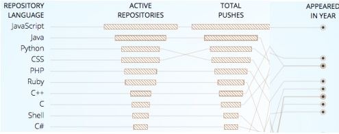 在这里我合并了C和C++,忽略了CSS和shell脚本。CSS并不是一种编程语言。shell脚本是无论你采用什么技术都对你有用的,不过如果你只会这个你将很难找到工作。