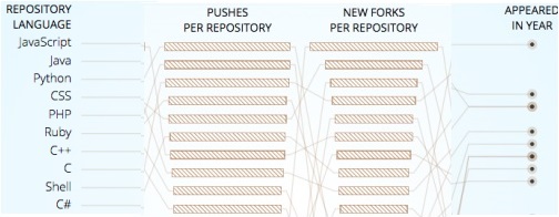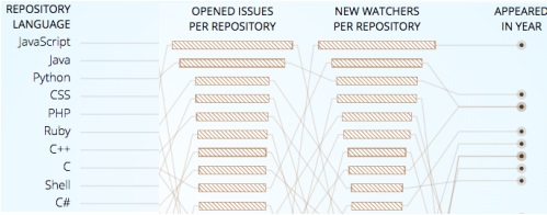 GitHut是一个相对较新的资源,据分析目前在GitHub中有220万活跃库,前十为: