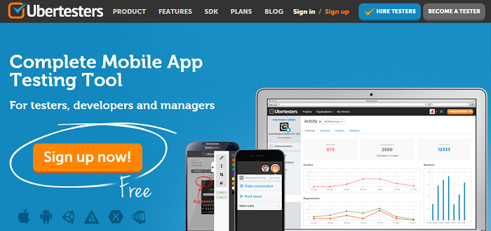 Ubertesters是一个全面的测试解决方案,为分发新的构建和报告错误提供一个广泛的工具。你甚至可以为测试启用/禁用特定的构建。Ubertesters 提供免费的100MB存储和两个项目。目前支持iOS和Android应用,在未来会支持Windows。