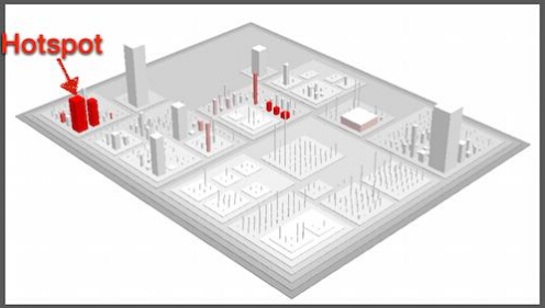 一个热点被高亮的代码城市。