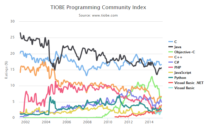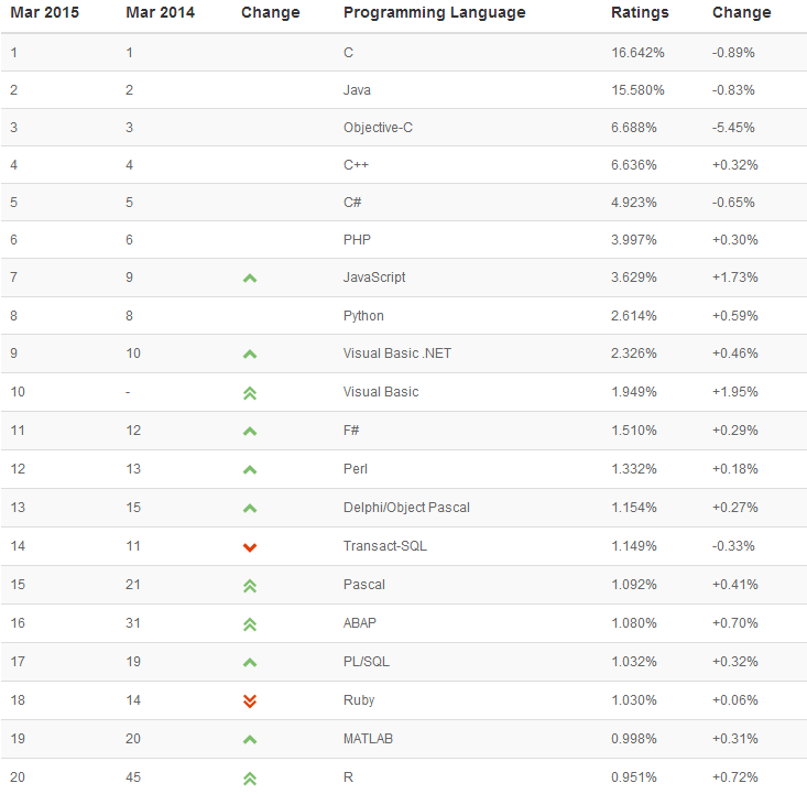 TIOBE 2015年3月编程语言排行榜:F#创历史新高 |