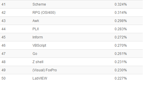 以下是21-50编程语言排名: