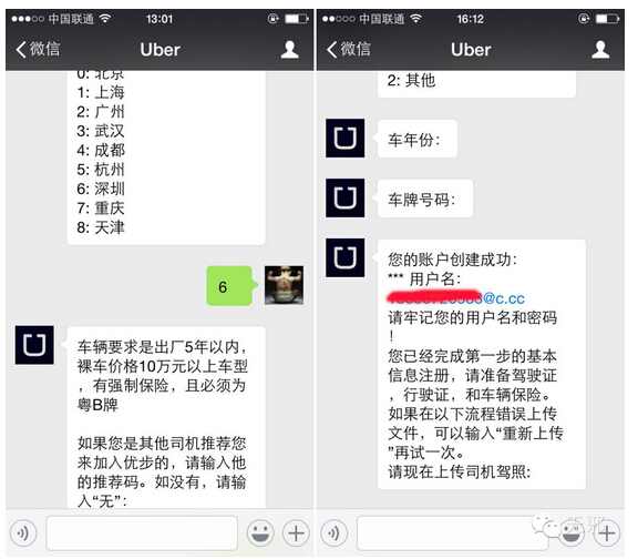专车的注册比较简单,可以在网上走完全部流程,目前看来,Uber并没有实现和交通系统的对接(也很难),即无法确认用户上传的驾驶证、行驶证的真伪,而这些未经验证的车辆可以接单并实现分成。同时,当次乘车是无法立即获取发票。