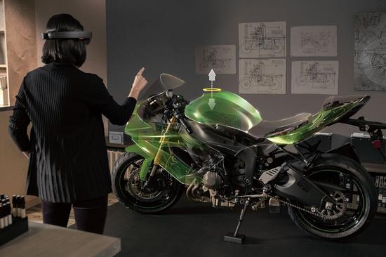 而在随后的沟通协作上,如果距离甚远,通过Hololens全息技术,用户可以面对面交流并进行设计演练。如果建筑物已完成设计并付诸施工建设,但客户却突然来电要求更改某些房间的尺寸。这时,用户就可以通过Hololens对局部重新设计,并进行测试。微软HoloLens给出的一位女士正在设计摩托车的示例就是很好的例子。