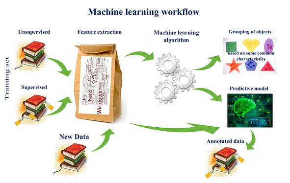 图3 典型的机器学习流程(图来源于 Natalia Konstantinova 博士的博客)。