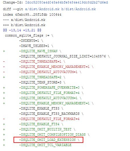 图5 Google在Android 4.1中禁用了load_extension