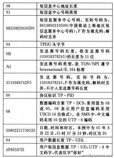 图7 典型的短信PDU格式