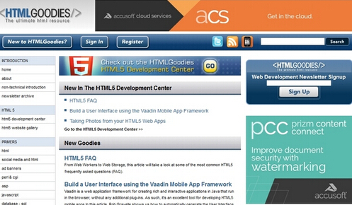 HTMLGoodies 的 HTML 基础包括 HTML 5 的功能、键盘事件、视频内容、媒体事件、鼠标事件和更多的教程。如果您正在寻找的文章来介绍如何使用 HTML 5,它是一个开始的好地方。