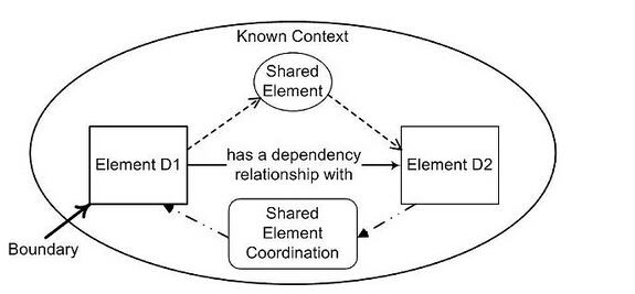 我们可以将这种共享的(在某些情况下是假设的)知识建模为一种抽象的元素,包含两种独立的实现,并将其称之为“共享的元素”。请注意,这种共享的元素与接口的意义是不同的,虽然后者同样也不需要其它应用的某个精准的模型。