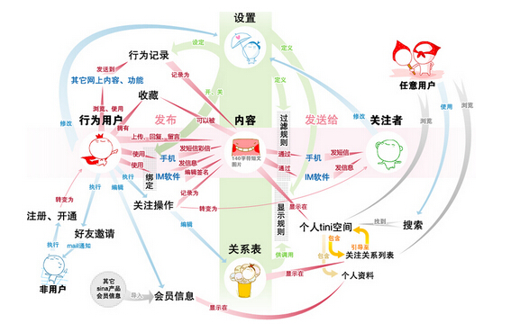 我们先看一张微博的核心业务图(如下),是不是非常复杂?但这已经是一个简化的不能再简化的业务图了,第三代技术体系就是为了保障在微博核心业务上快速、高效、可靠地发布新产品新功能。