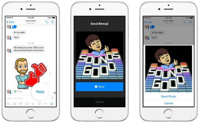 除了展示这些专有应用之外,Facebook还展示了对Messenger的其他“改进”,比如贴纸(一个人的脸被换成了笑脸卡通)、GIF动画和表情符。