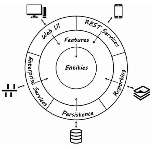 如何将应用划分成组件?正当你打开开发环境的时候,应用程序告诉了你什么?我希望是它所提供的功能,而技术和框架不是它十分关注的。Alistair Cockburn几年前就建议,以同心圆方式分解比层叠方式更自然。使用这种分解方式的架构模型最近引起了人们的注意,并达到了有望成为新标准的程度。