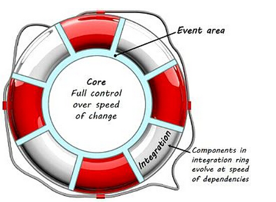 在某些时候,我们应该放弃一个统一内核的概念,转而采用来自领域驱动设计的概念“有界上下文”。一个将两个有界上下文分成两个独立模型的著名例子是“命令查询职责分离(Command Query Responsibility Segregation,缩写为CQRS)。应用程序可以用多个类似的独立模型服务于不同的业务上下文。这些上下文是为了允许模型针对不同的——通常是组织方面的——原因以不同的速度变化。方便起见,我们必须打破它们之间的“二进制依赖(binary dependencies)”。