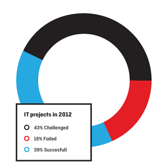 根据Standish Group发布的2013年统计数据我们可以发现,在2012年只有39%的IT项目取得了成功。